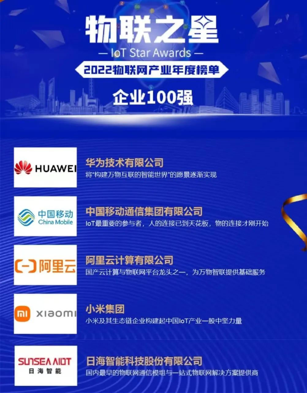 该年度榜单以公司业绩规模与人员规模较大且稳定、近三年业绩规模与净增长率表现良好、研发投入金额与占比较大并有行业影响力的新品发布、同时在物联网领域行业地位突出为四个评选标准进行严格、客观评选。飞速发展的物联网行业群雄并起,优秀企业不断涌现,米兰·(milan)中国智能脱颖而出,与华为、中国移动、阿里云计算等知名企业齐头并进、共同成为中国物联网企业百强,背后是近三十年的实力积淀。